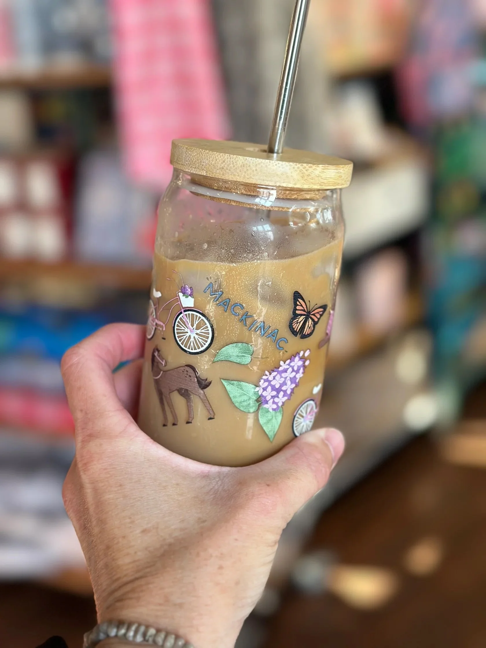 Souvenir shop Little Luxuries was looking for a unique pattern that would highlight everything there is to love about their home, Mackinac Island. I loved developing this full color pattern for them! Each element has special meaning, from the Round Island Lighthouse cameo, to the bike (a preferred method of travel on the island), to the blooming lilacs celebrated every year during the Mackinac Island Lilac Festival.